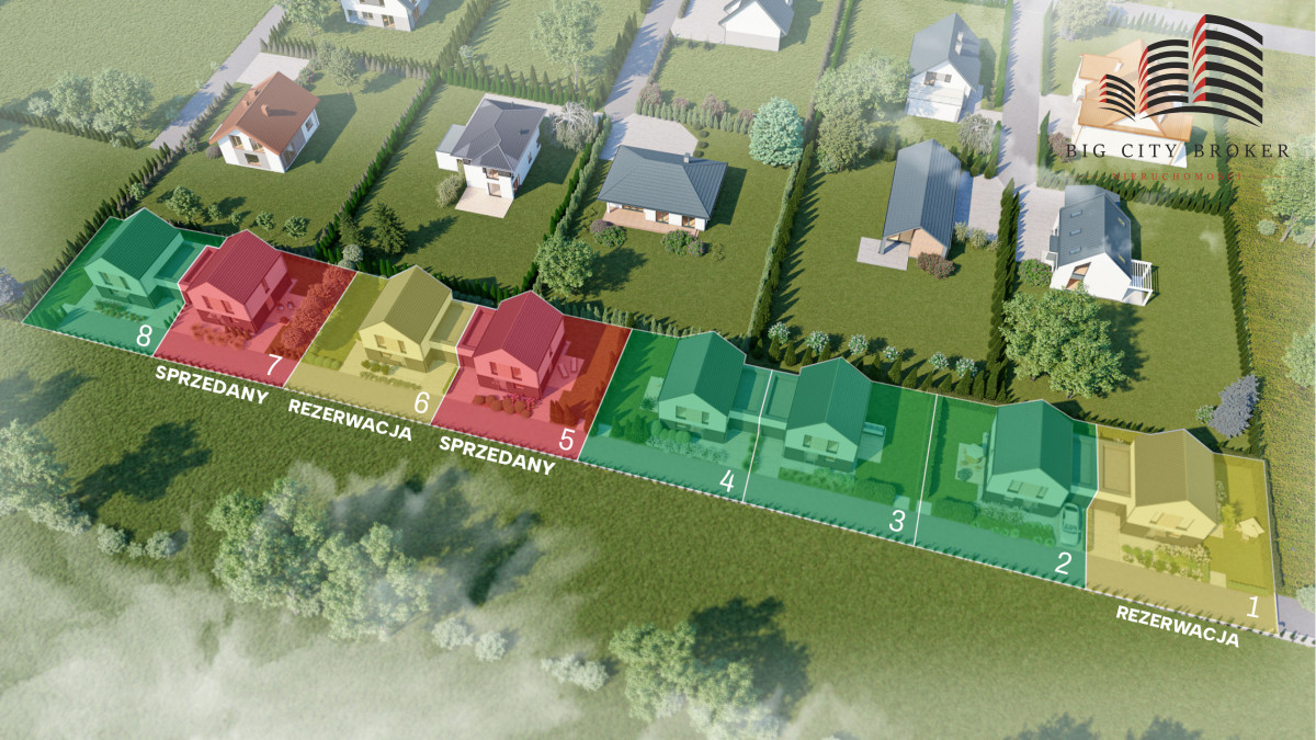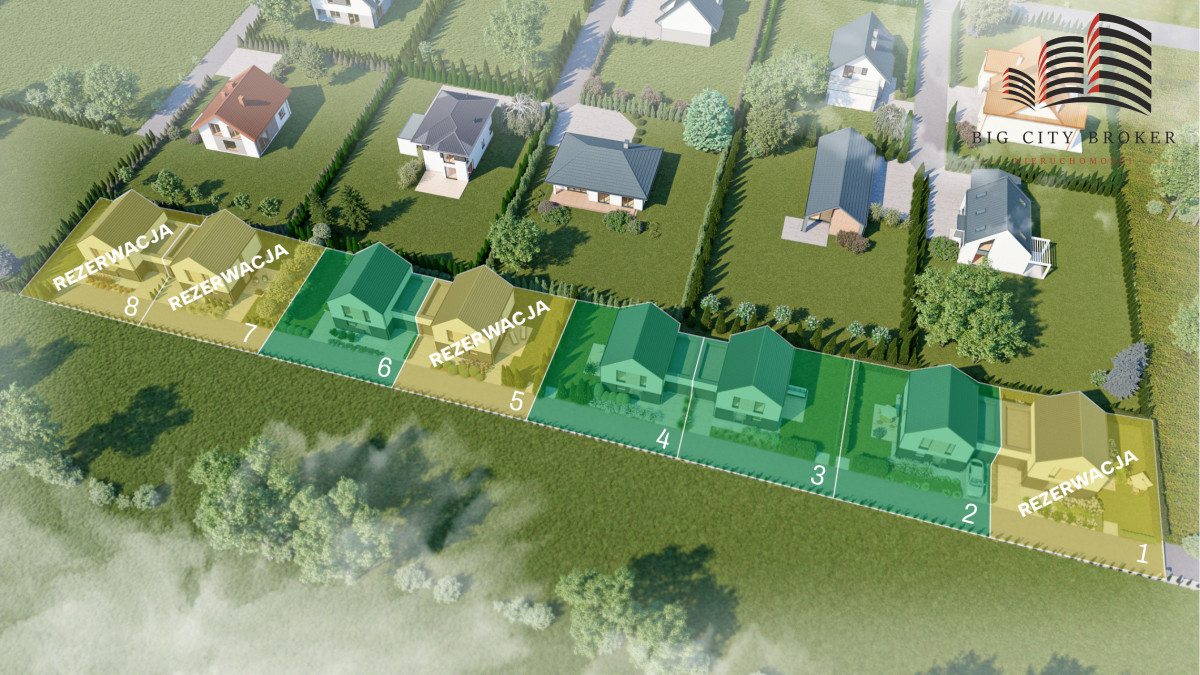 tuż przy granicy Lublina. Projekt obejmuje budowę 8 domów w zabudowie bliźniaczej, połączonych garażami.