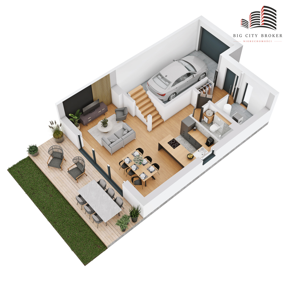 Ten nowoczesny i funkcjonalny budynek o powierzchni 125 m² został posadowiony na ustawnej działce 322 m², zapewniającej przestrzeń do relaksu.