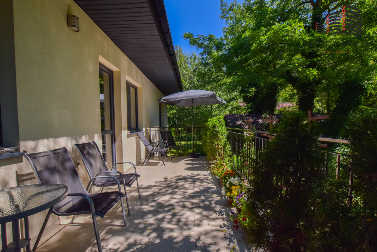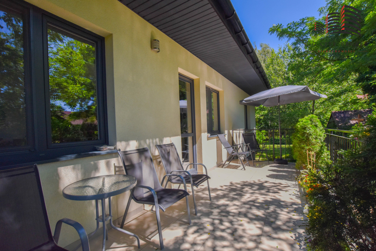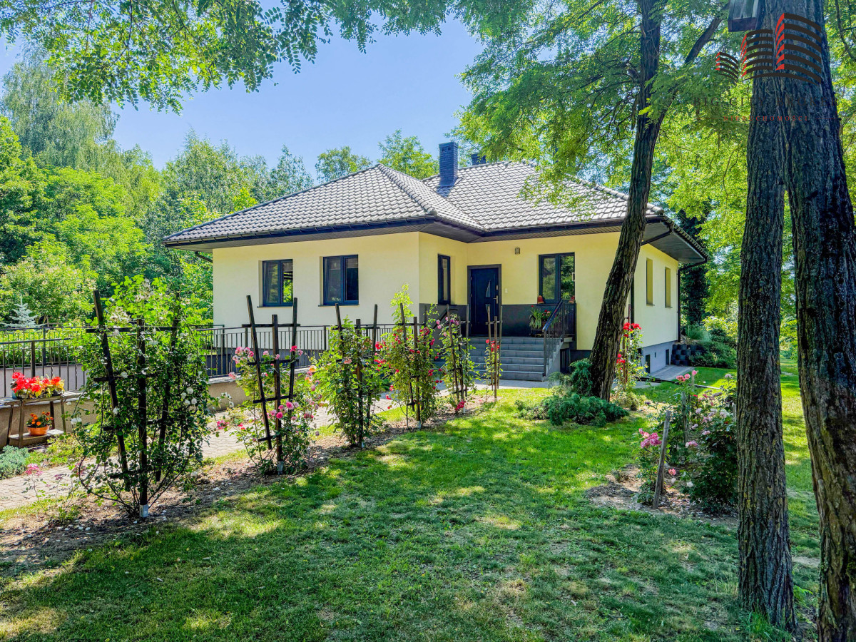 Dom jednorodzinny z 2014 roku - powierzchnia użytkowa 223,2 m², usytuowany jest na dużej działce otoczonej polami, łąkami i lasem, co gwarantuje ciszę, spokój i prywatność.