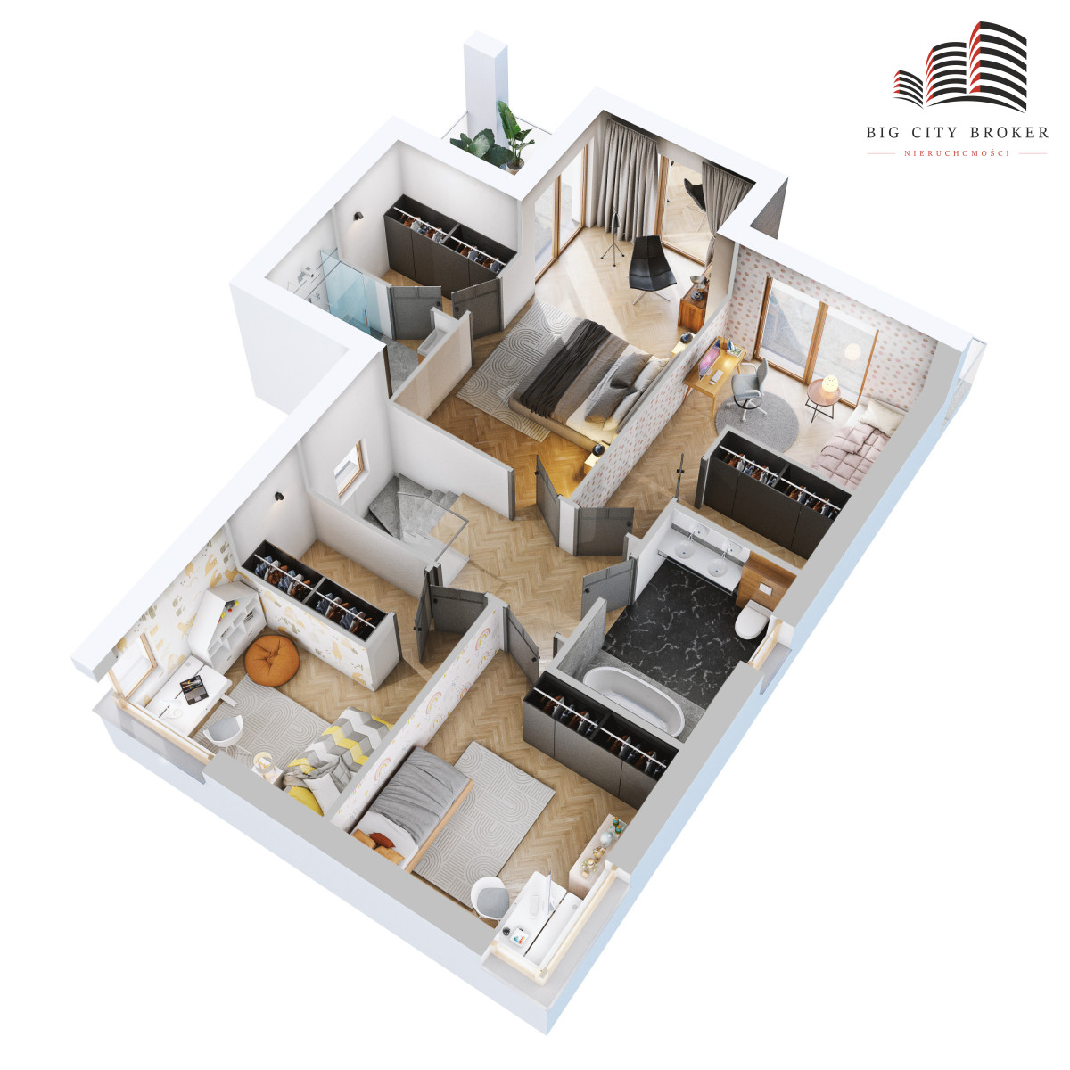 - master bedroom z łazienką i garderobą