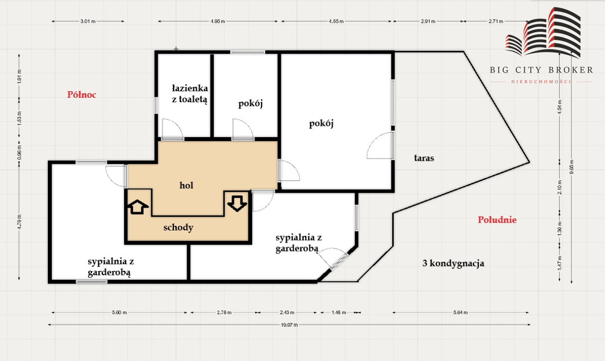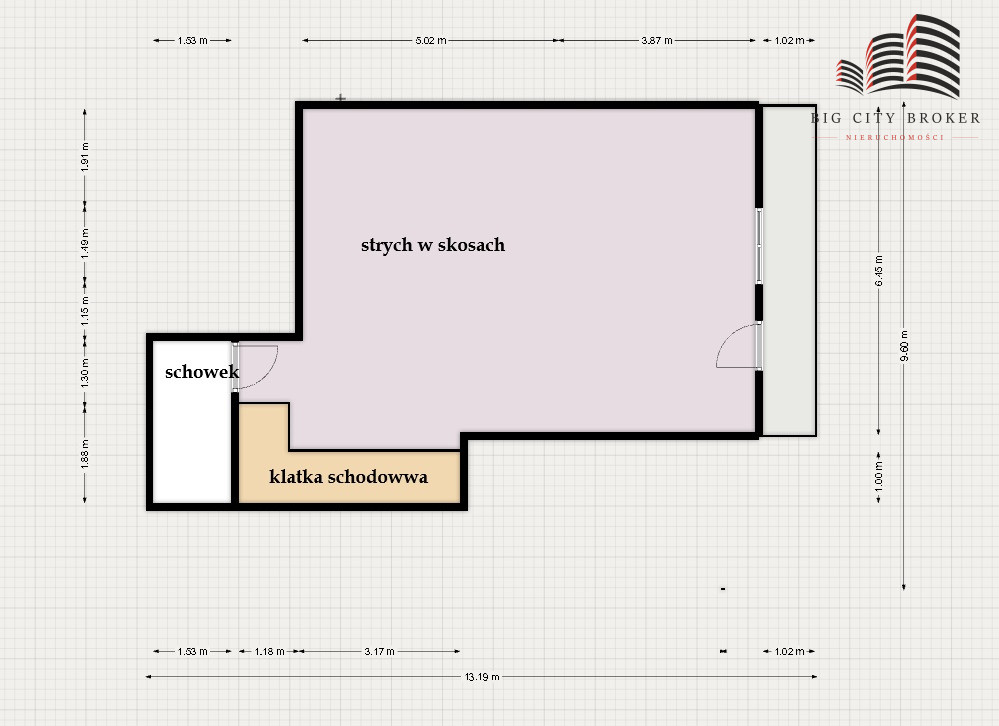 Poddasze użytkowe do adaptacji około 60 m2 po podłodze.