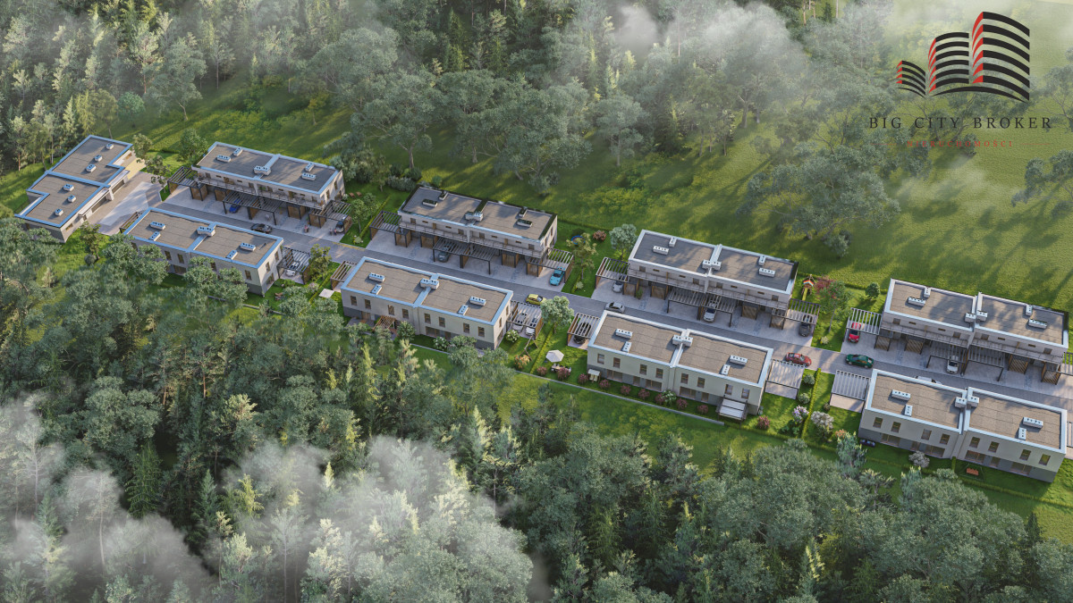 Inwestycja SKOWRONKOWA to oferta czterech domów w zabudowie szeregowej. Osiedle będzie ogrodzone, zamknięte z jedną otwartą przestrzenią przed domami i indywidualnymi ogródkami. Oferta skierowana jest do osób którym zależy na doskonałej komunikacji z miastem, ale w otulinie lasu, z wieloma ścieżkami do spacerów i jazdy na rowerze.