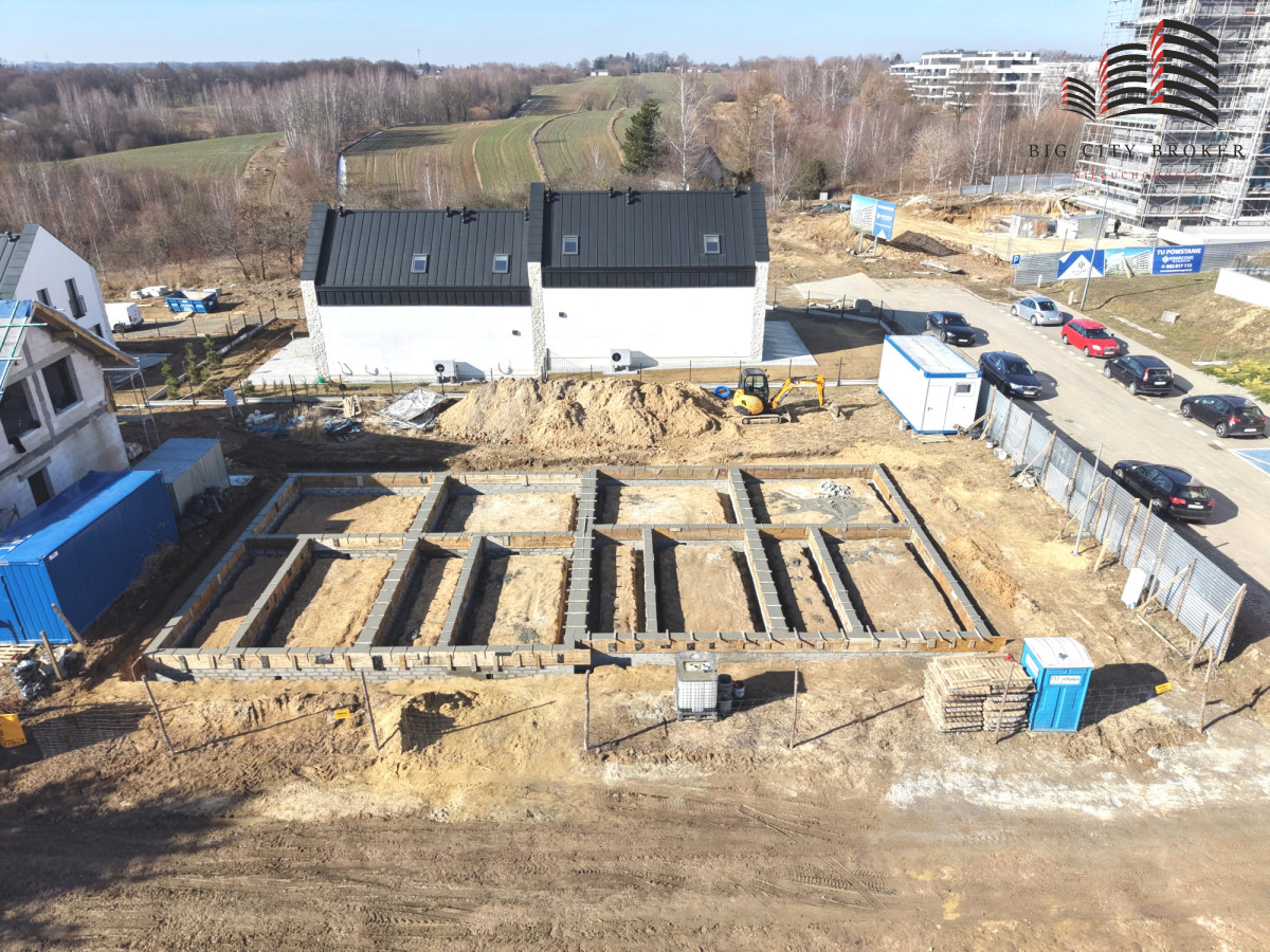 Projekt Q4 to połączenie estetyki nowoczesnych stodół z zaawansowanymi technologiami budowlanymi. Budynki znajdują się tuż
