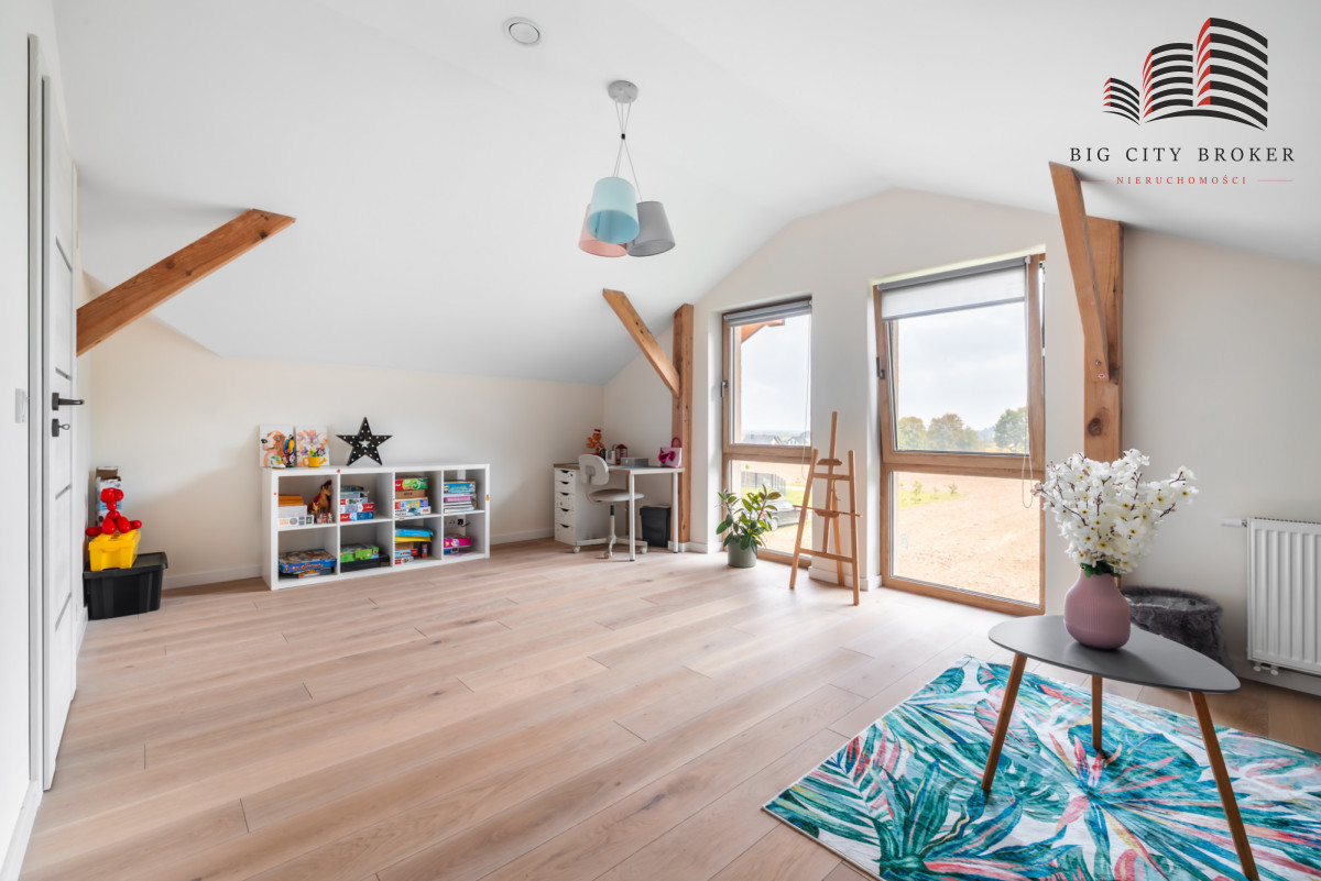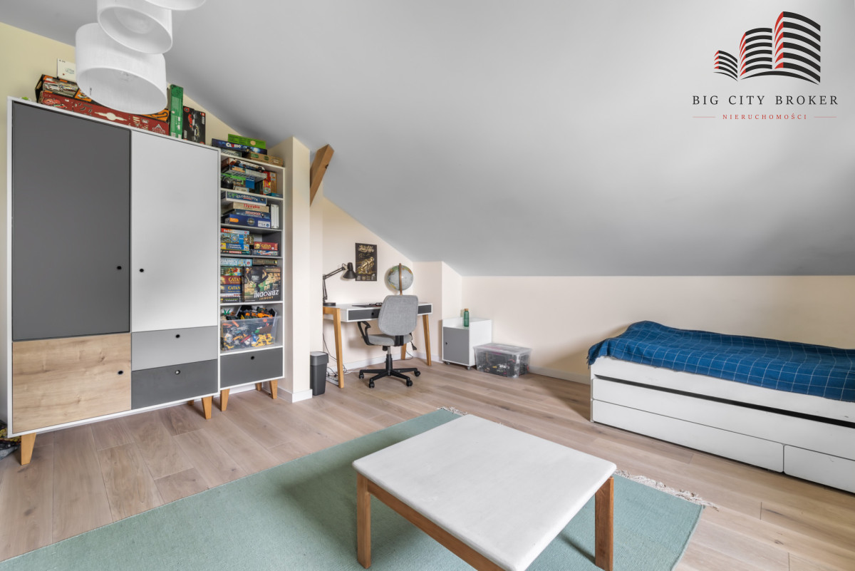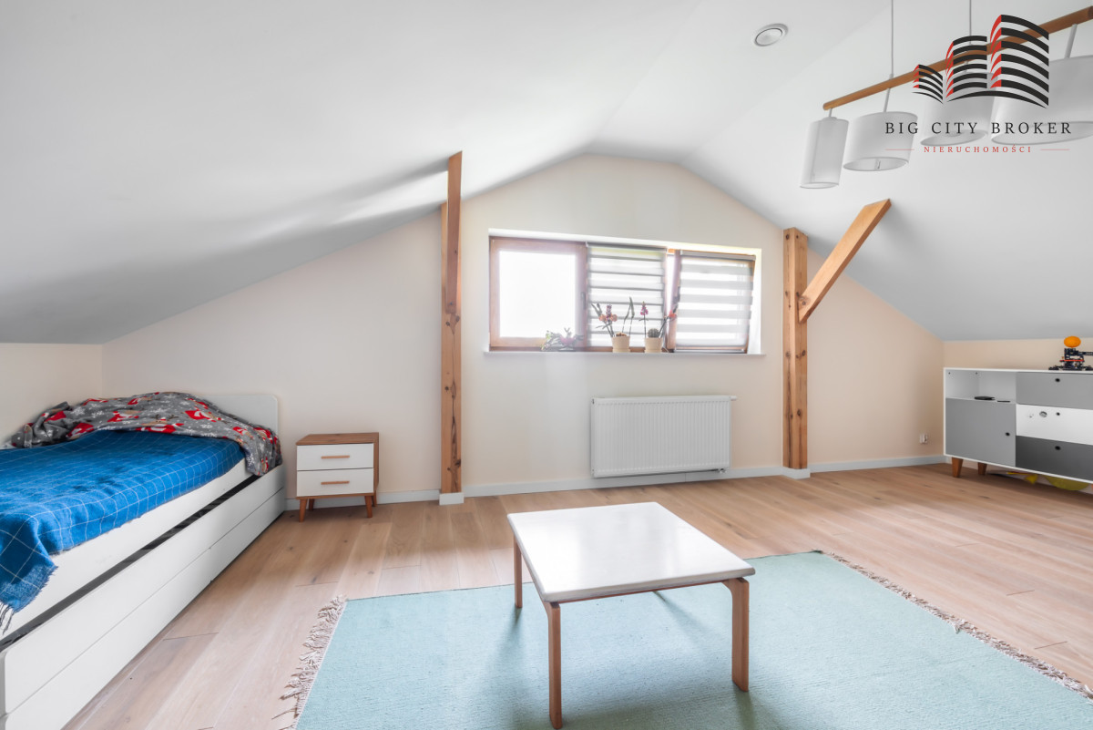 - pomieszczenie (duży pokój ze skosami) idealnie nadający się na salę kinową