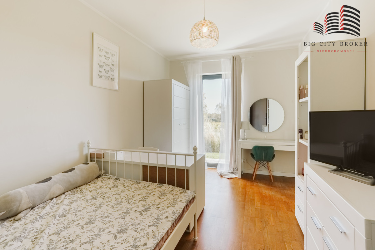 Przestronny salon z aneksem kuchennym stanowi serce domu - pełen światła, z wyjściem na ogród i miejscem na rodzinne spotkania. Trzy sypialnie, dwie łazienki oraz praktyczne zaplecze techniczne gwarantują wygodę i funkcjonalność na co dzień.