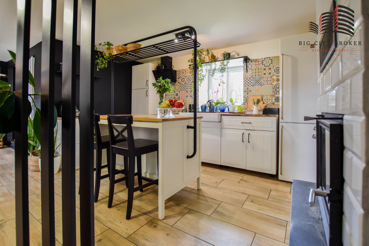 Parter to piękna kuchnia, w wyjatkowym stylu, łazienka, salon oraz duże pomieszczenie gospodarcze.