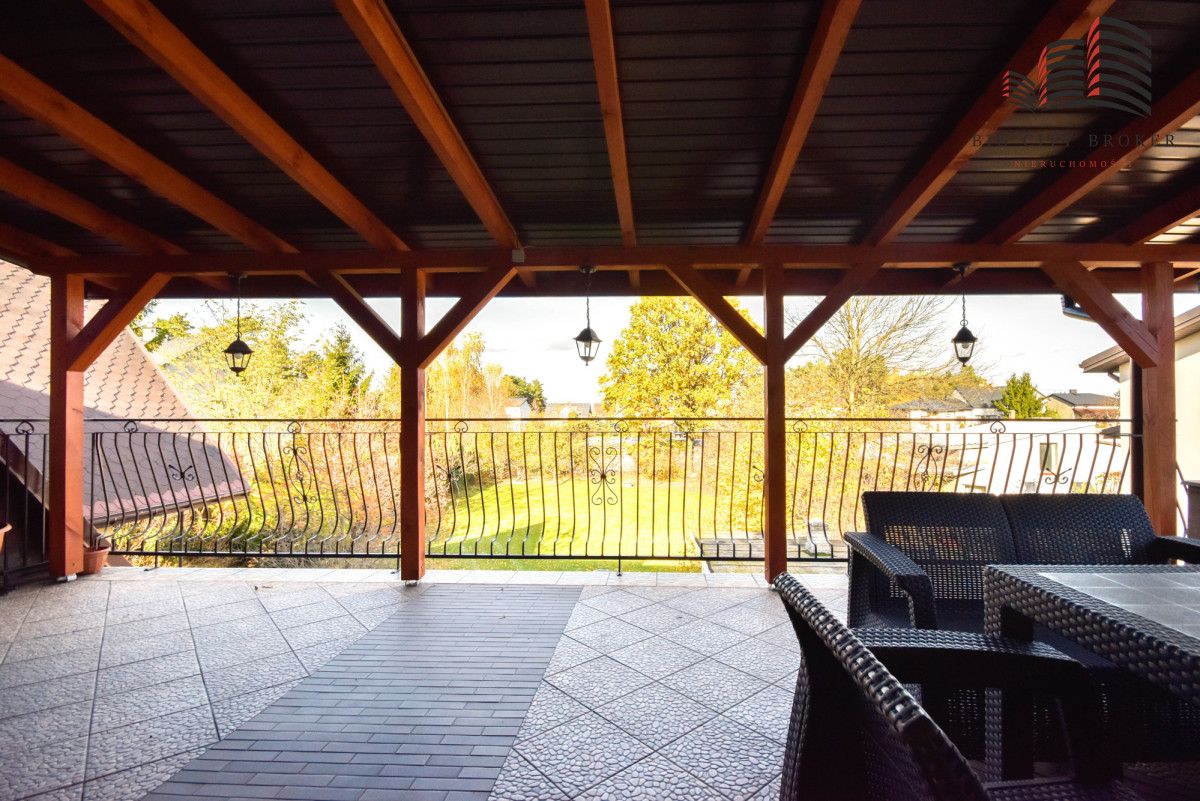 Taras z tyłu domu zapewnia piękny widok na ogród i doskonałe miejsce do wypoczynku.