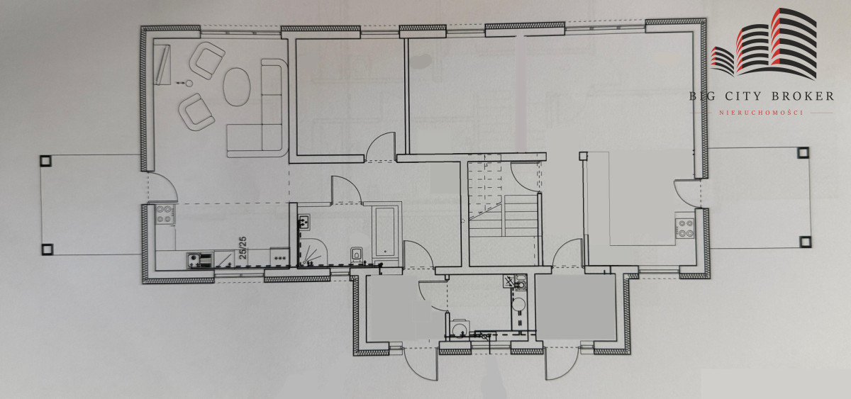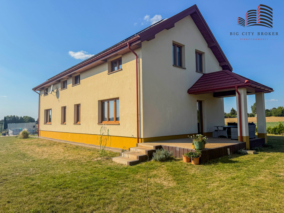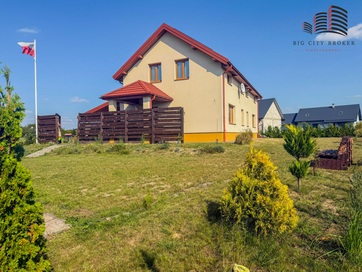 Funkcjonalny układ domu:Nieruchomość idealnie sprawdzi się zarówno dla rodziny wielopokoleniowej, jak i osób planujących połączenie funkcji mieszkalnej z działalnością gospodarczą.