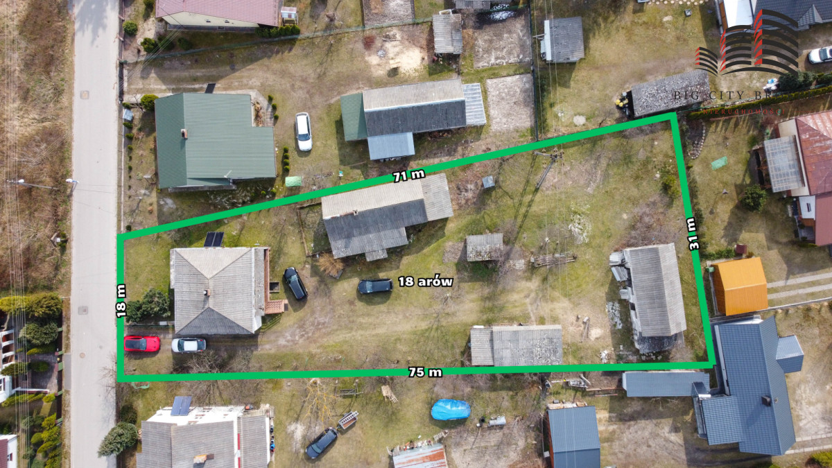 Działka znajduje się w pierwszej linii zabudowy i zajmuje powierzchnię 18 arów (1800 m²), jest ogrodzona z każdej strony. Dojazd odbywa się drogą asfaltową. Do działki doprowadzony jest prąd, wodociąg, kanalizacja i światłowód.