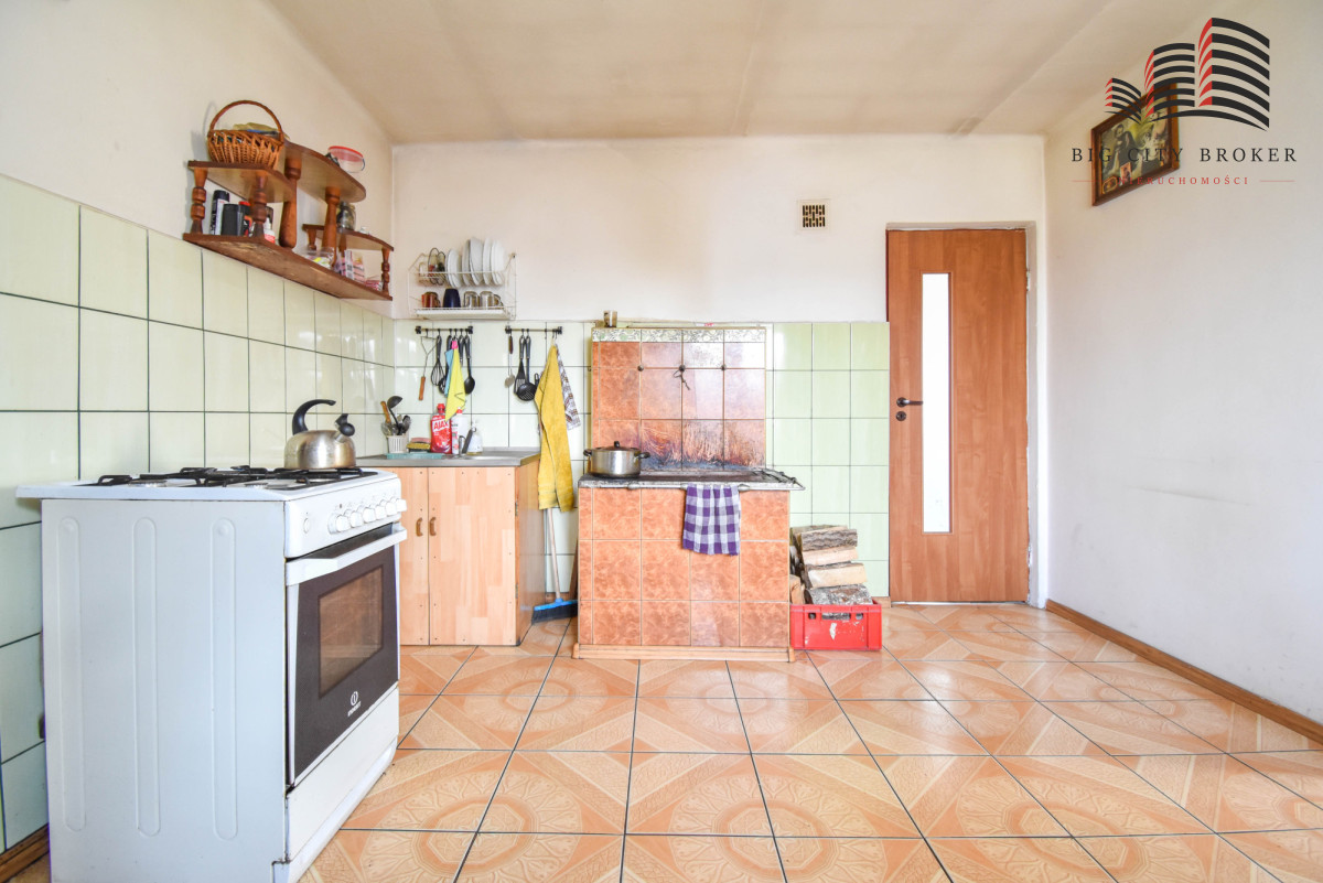 Dom obejmuje ok. 80 m² powierzchni użytkowej, na którą składają się 3 pokoje, przestronna kuchnia, łazienka oraz przedpokój. Pod częścią domu znajduje się piwnica, a w niej piec na drewno lub węgiel oraz zasobnik na ciepłą wodę. Zainstalowano również kolektory słoneczne. Okna i grzejniki były wymienione ok. 10 lat temu.