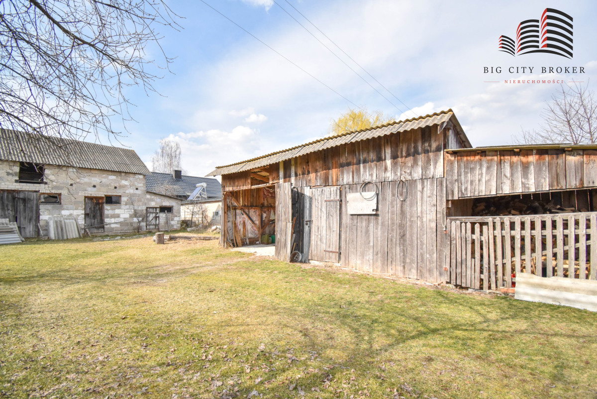 Oprócz domu, na działce znajdują się również budynki gospodarcze.