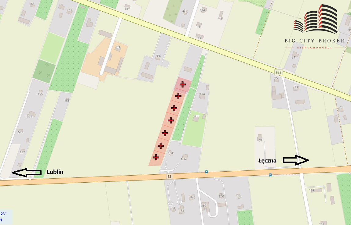 Działki zlokalizowane przy głównej trasie Lublin - Łęczna.