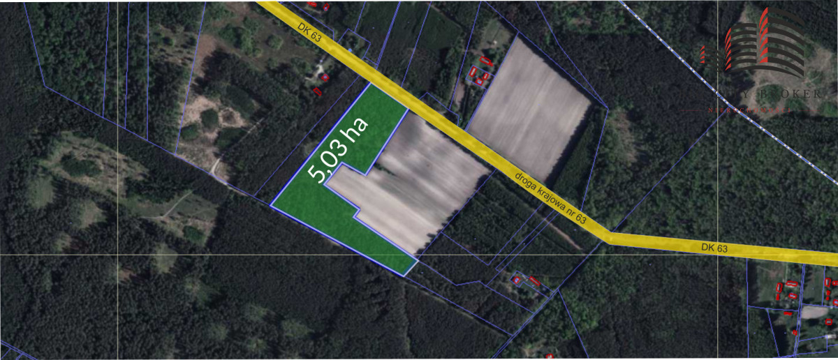 przy drodze krajowej nr 63 z możliwością wjazdu.