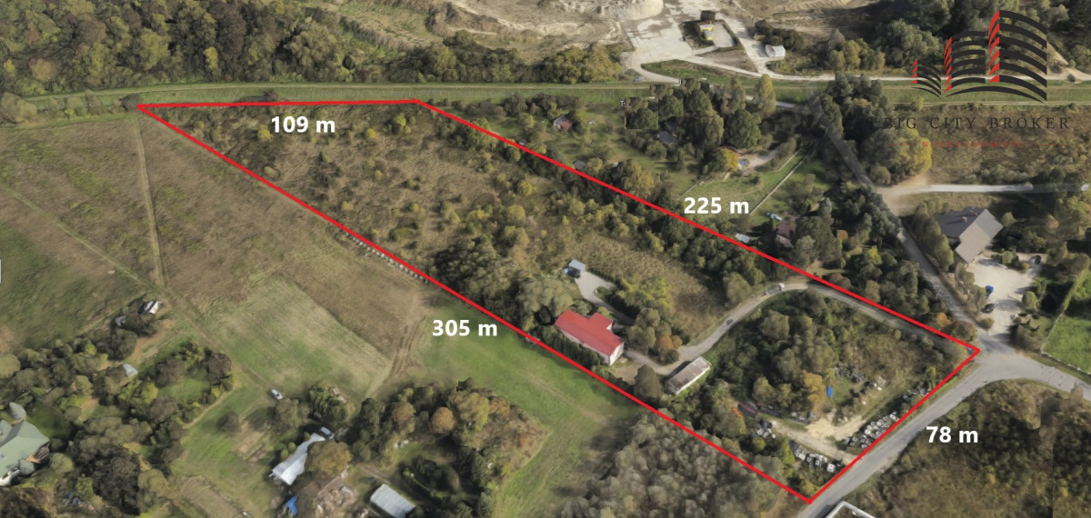 Całość to 1,97 ha przeznaczona w Miejscowym Planie Zagospodarowania Przestrzennego do zabudowy jednorodzinnej. Obecnie działka jest przed podziałem na 9 działek budowlanych o pow. 2000 m2 każda + droga wewnętrzna.