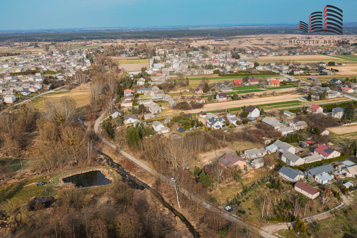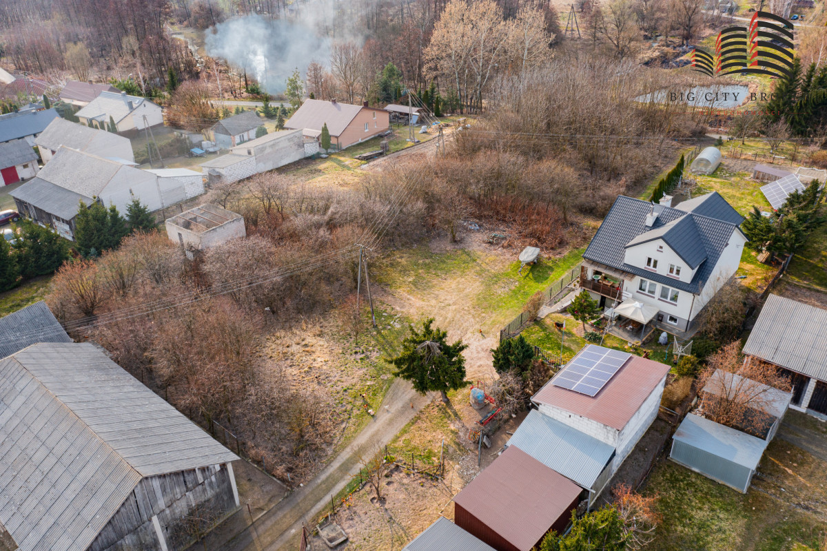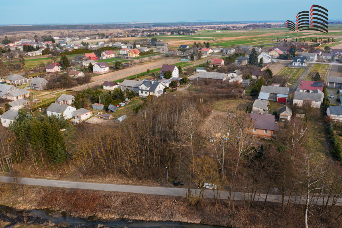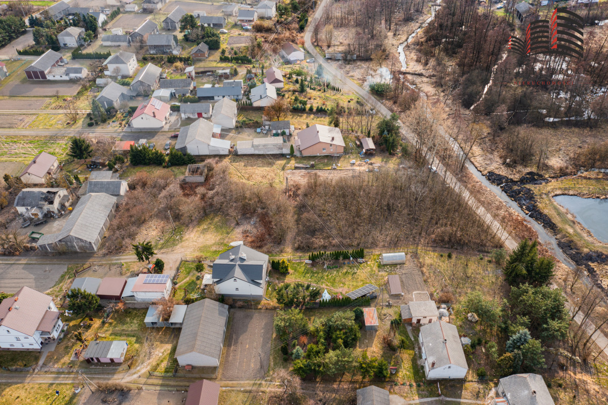 Piękna, rodzinna, spokojna okolica. Nieruchomość w kształcie prostkąta, częściowo zalesiona.