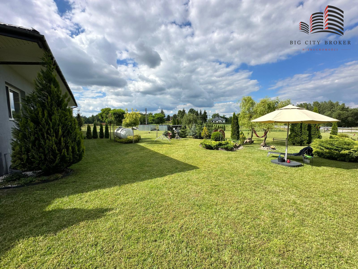 Zadbany ogród, teren ogrodzony i zagospodarowany.