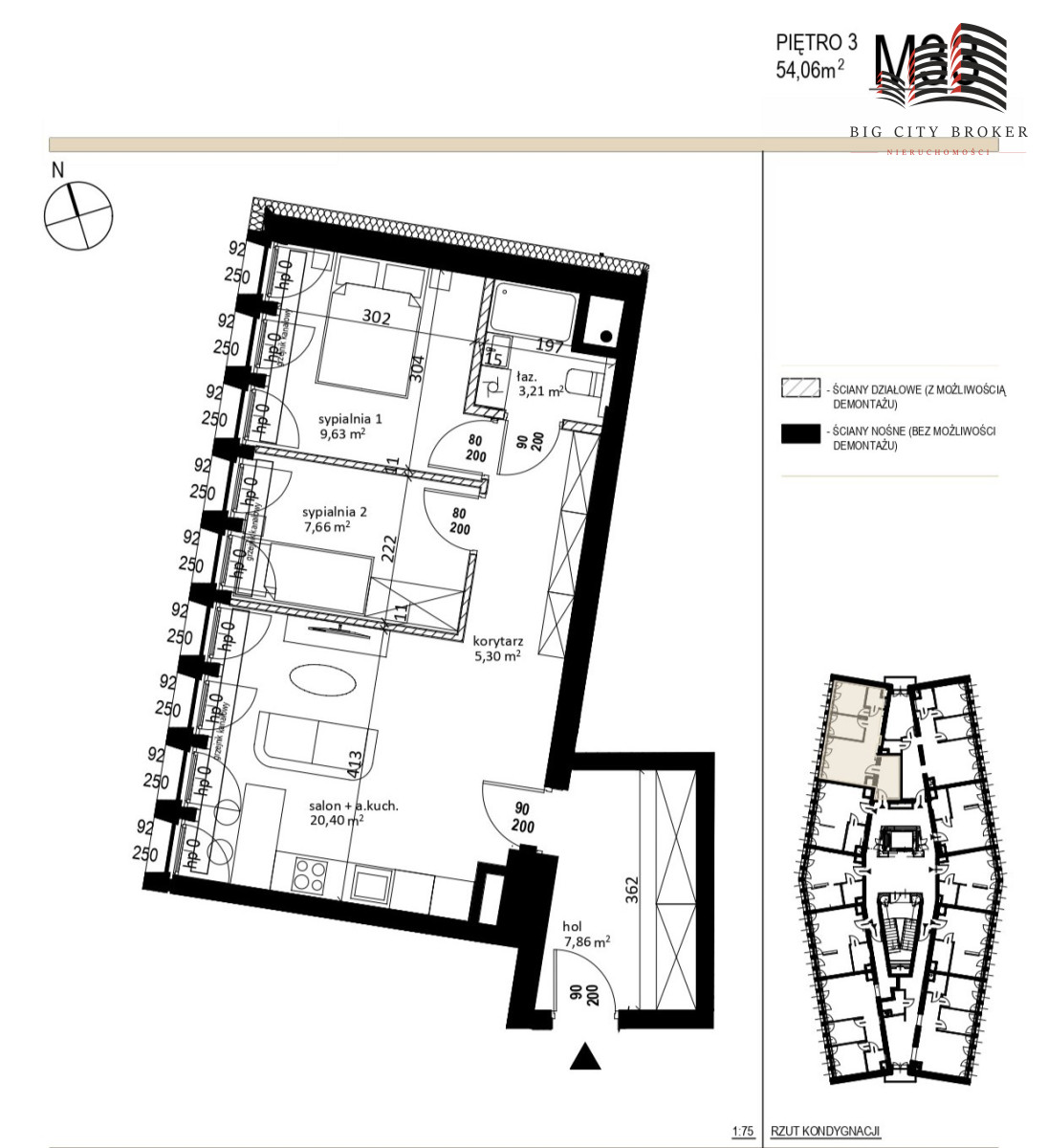 Apartament - 54,06 m² doskonale zaprojektowanej przestrzeni: