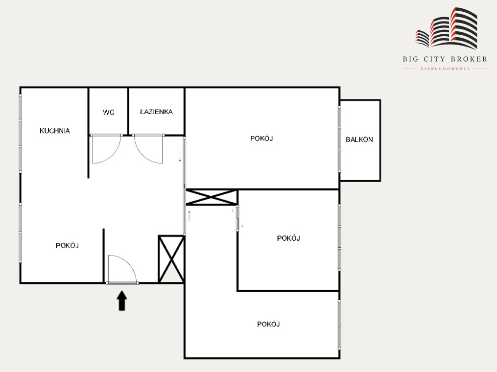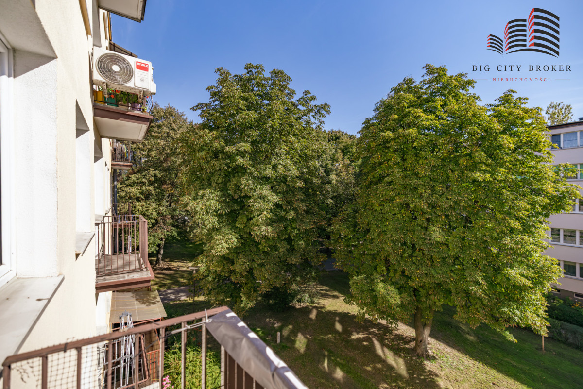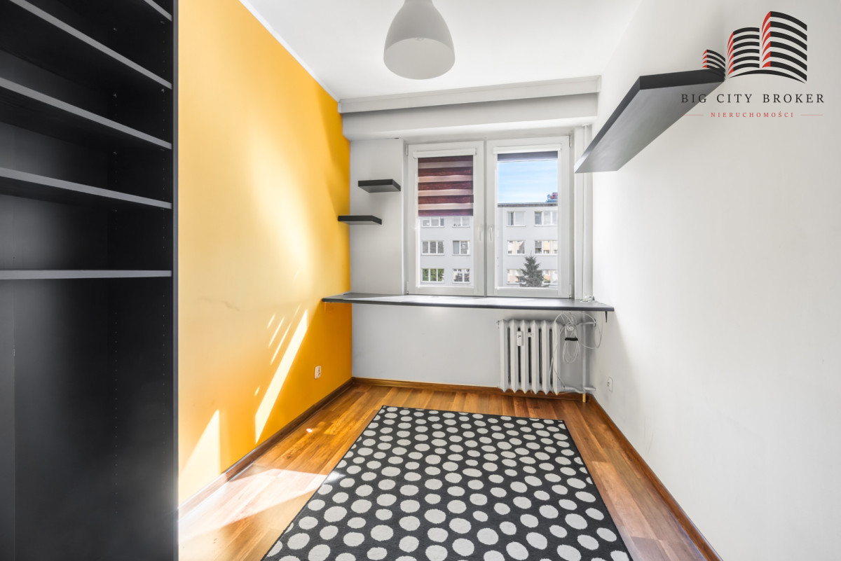 Mieszkanie dwustronnie rozkładowe (południowy-wschód i północny-zachód) z balkonem obecnie zaaranżowane jako 3 odrębne pokoje i kuchnia z jadalnią (pierwotny układ to 4 niezależne pokoje). Tylko jeden sąsiad na piętrze.