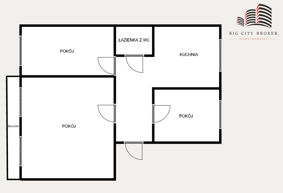 Mieszkanie: dwustronnie rozkładowe o nieprzechodnich pokojach. Metraże pokoi: 25, 12, 9. Układ dużego pokoju umożliwia wydzielenie czwartego pokoju.