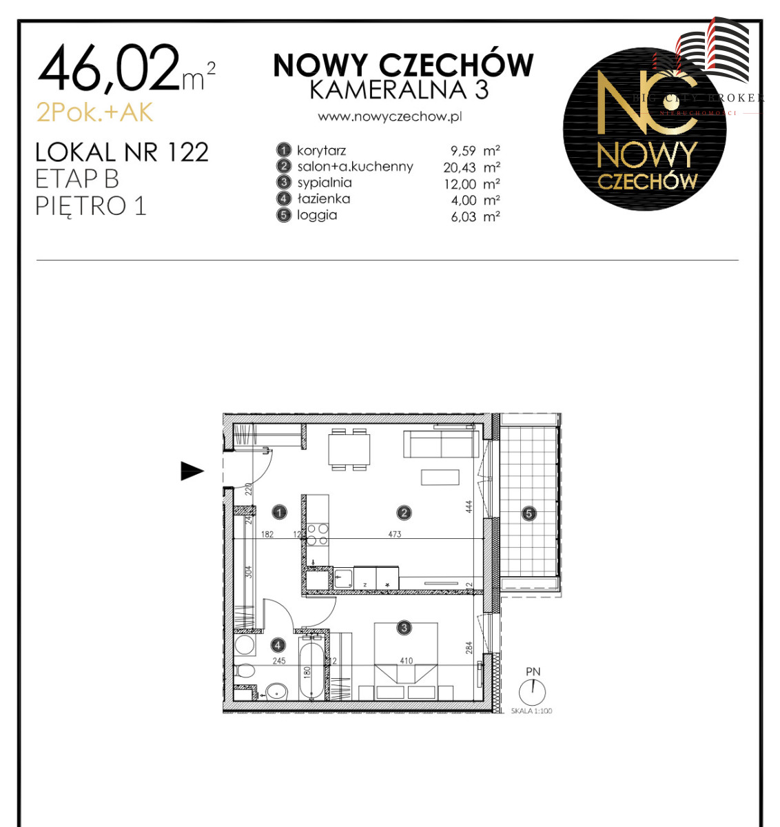 - Mieszkanie: 46,02 m²