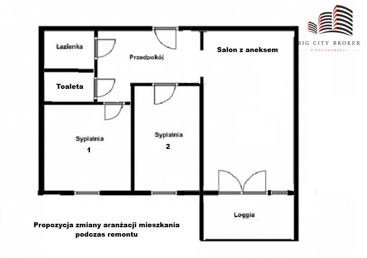 50 m2, DO REMONTU (obecnie 2 pokoje, oddzielna kuchnia z oknem, łazienka z osobnym WC oraz hol.