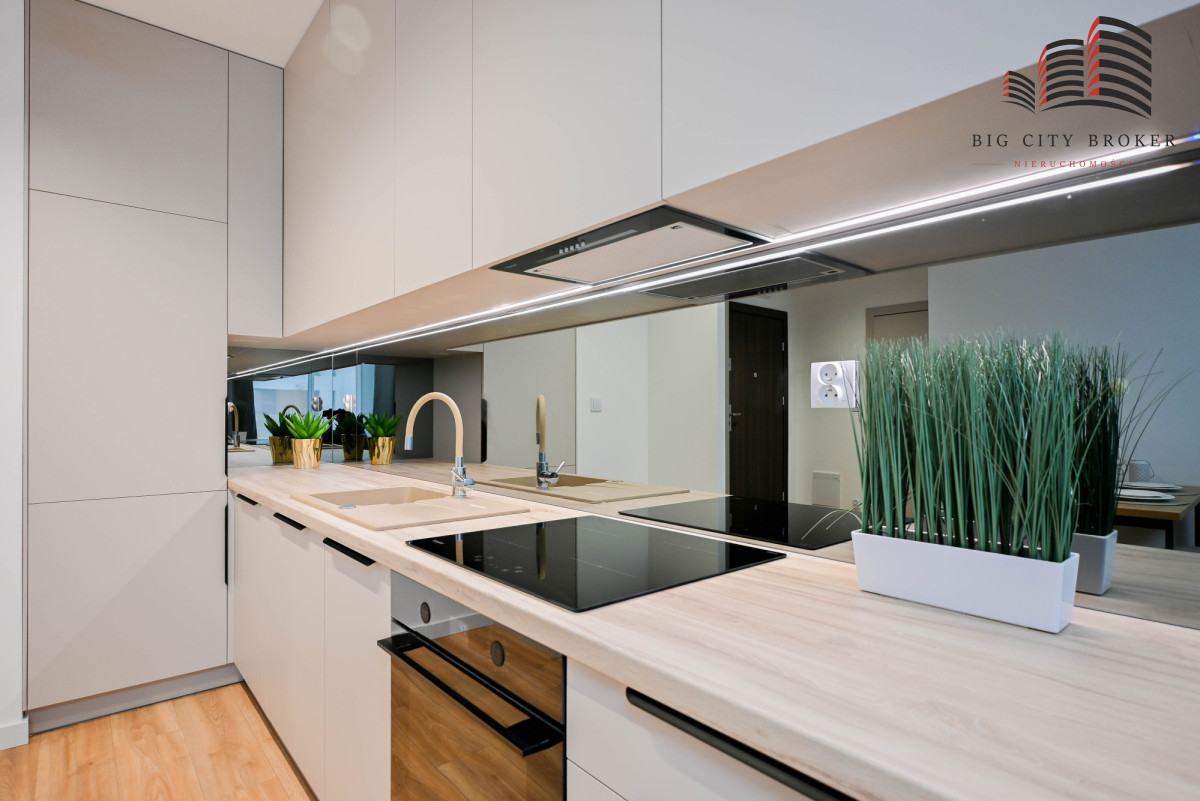 Wydzielona strefa kuchni, jadalni i wypoczynku