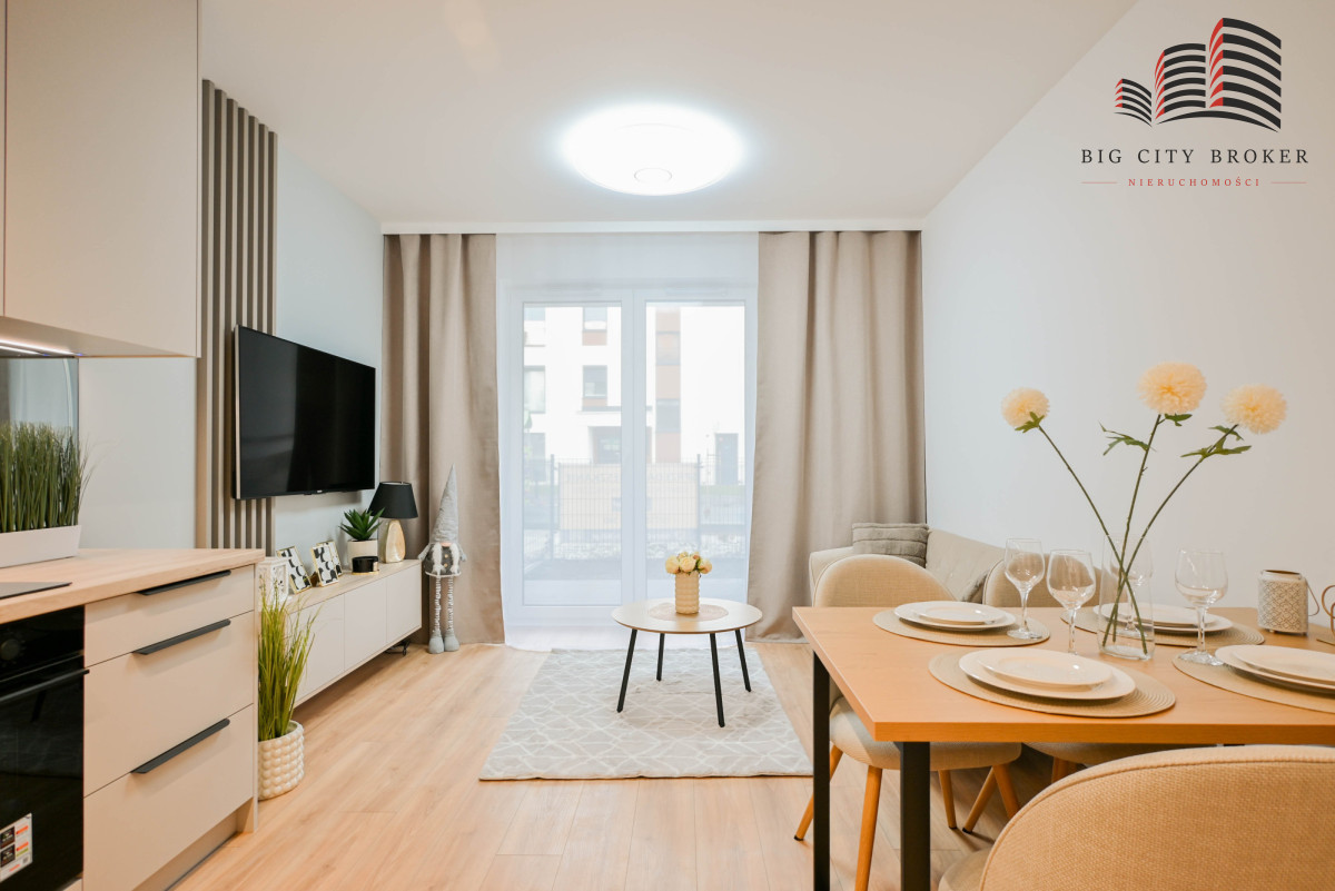 Na sprzedaż funkcjonalne 2-pokojowe mieszkanie o powierzchni 36,8 m², położone na parterze nowoczesnego budynku na osiedlu Koncertowe Wzgórze przy ul. Dereckiego (Czechów).