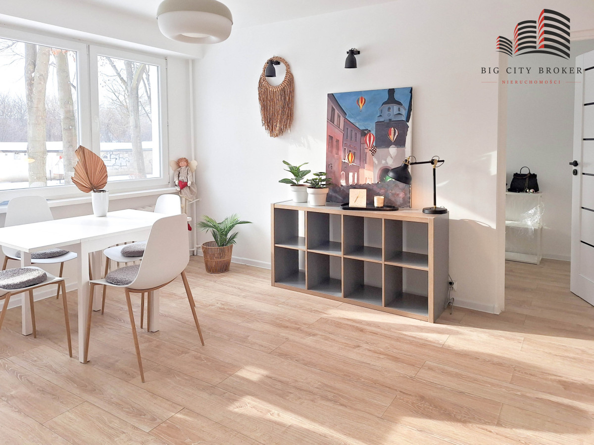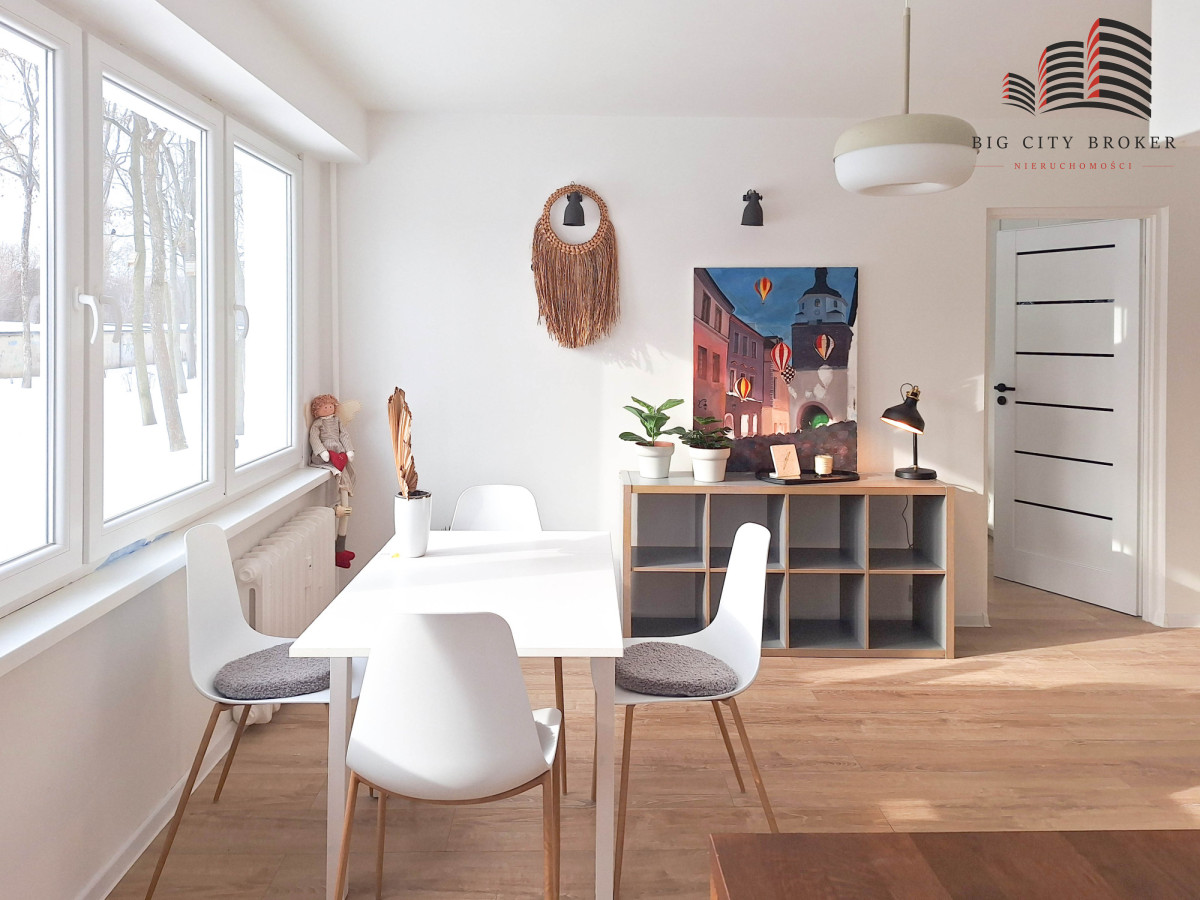 Lokal wyróżnia się dużymi oknami, dzięki którym wnętrze jest doskonale doświetlone przez cały dzień — mieszkanie jest słoneczne, przytulne, a jednocześnie bardzo praktyczne i wygodne w codziennym użytkowaniu.