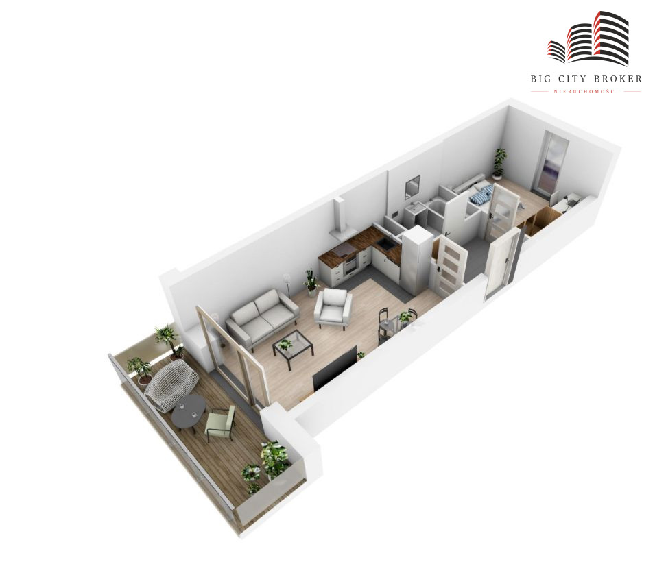 - przestronny balkon idealny na poranną kawę i odpoczynek po pracy.