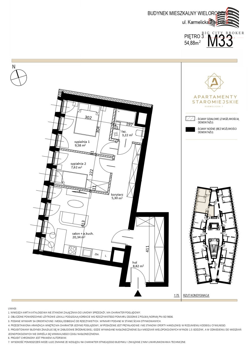 - Dwie sypialnie - większa dla rodziców (9,58 m²), mniejsza (7,62 m²) jako pokój dziecka lub prywatna strefa dla pracy i ciszy,