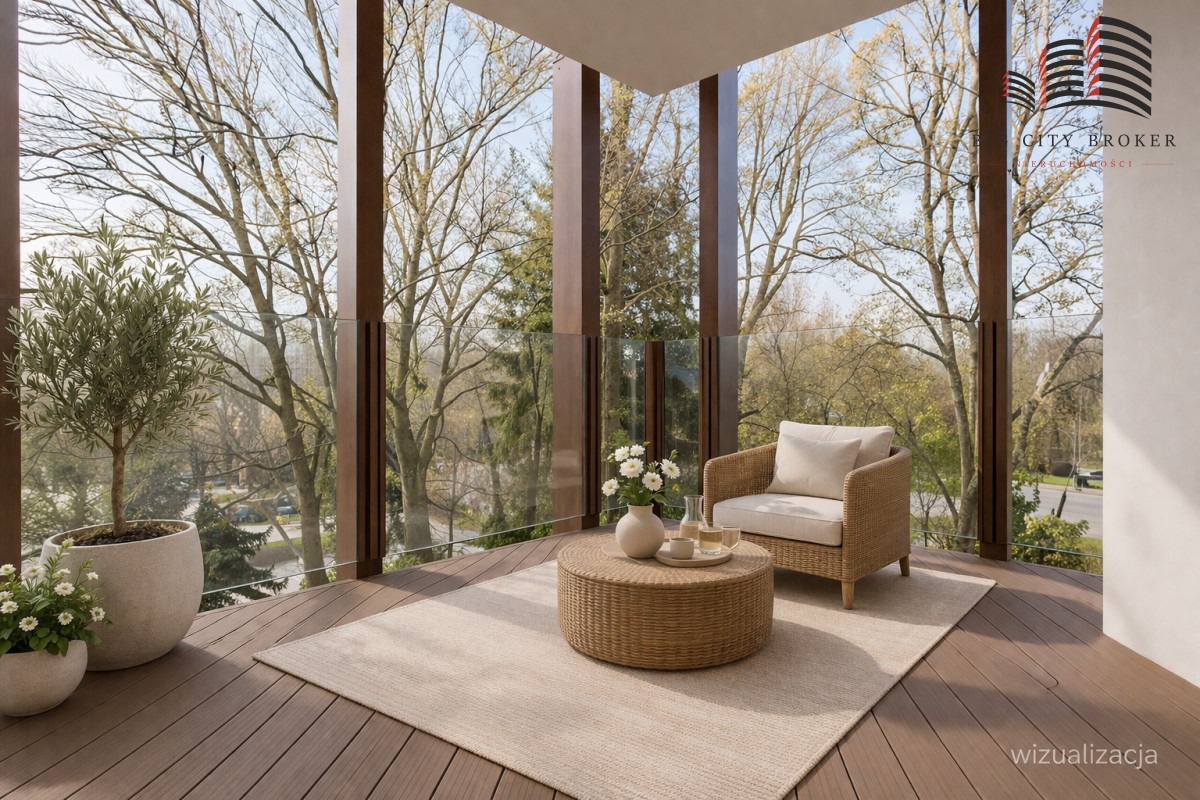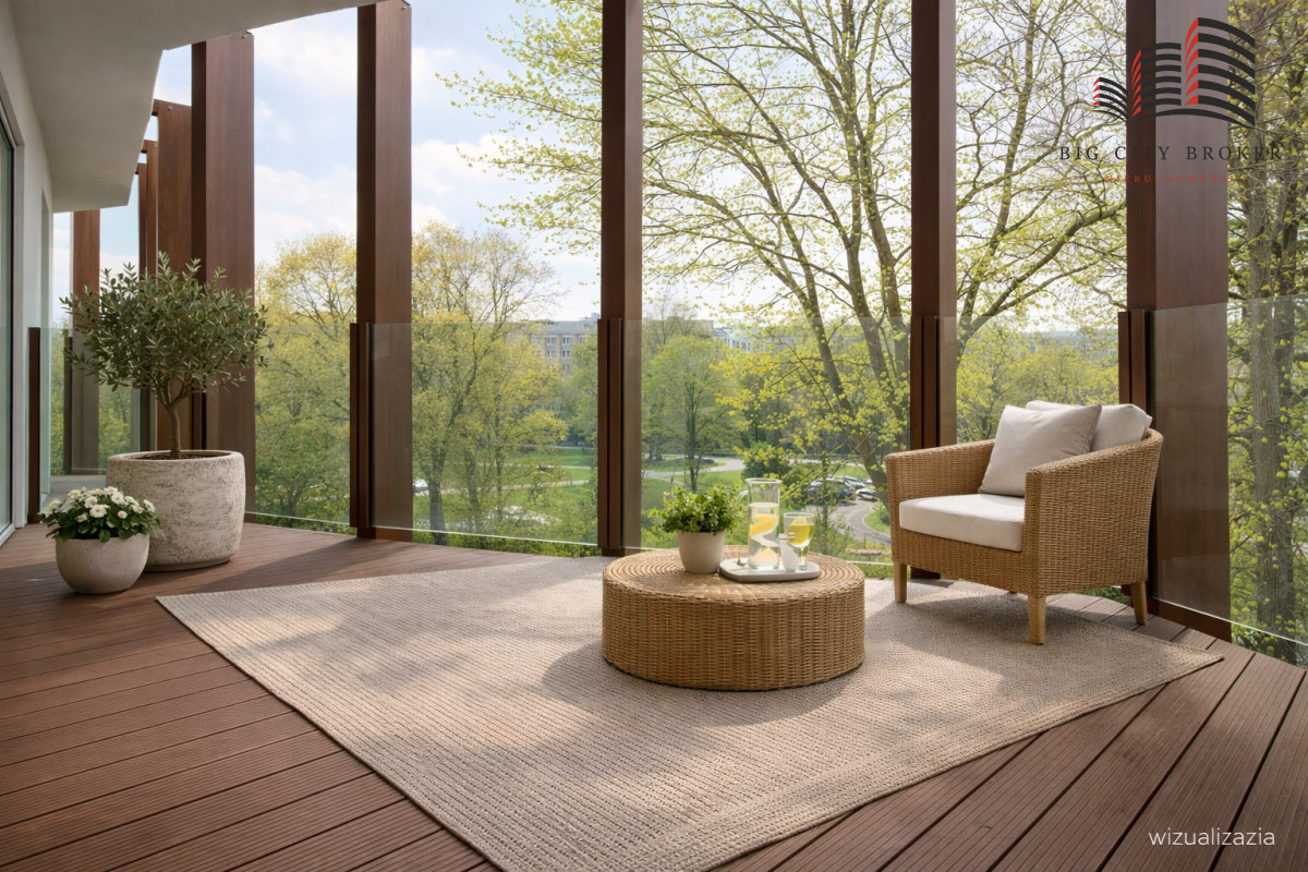 • duży balkon, z którego można korzystać nie tylko latem — to realna dodatkowa przestrzeń,