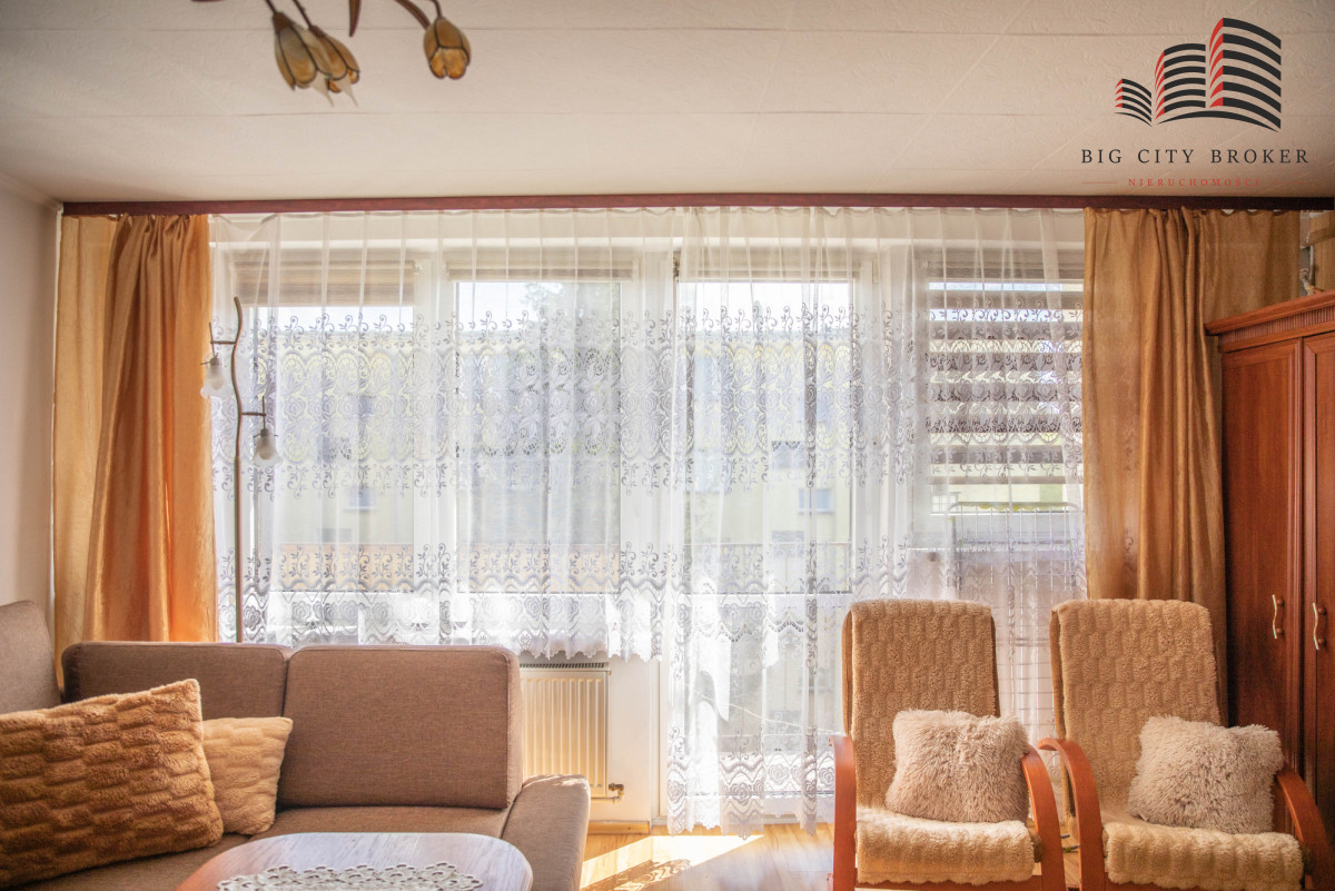 2 pokoje:- przestronny salon z wyjściem na balkon, bardzo dobrze doświetlony dzięki dużym oknom,